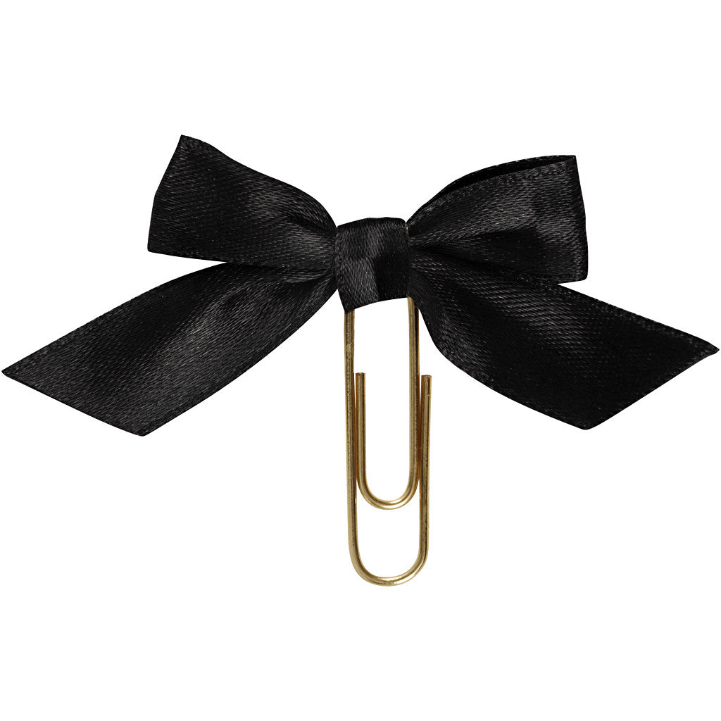 Trombones métalliques dorés avec un noeud en ruban de satin. Utilisés pour la décoration et les effets sur cartes, invitations , cadeaux, scrapbooking, calendrier et plus encore