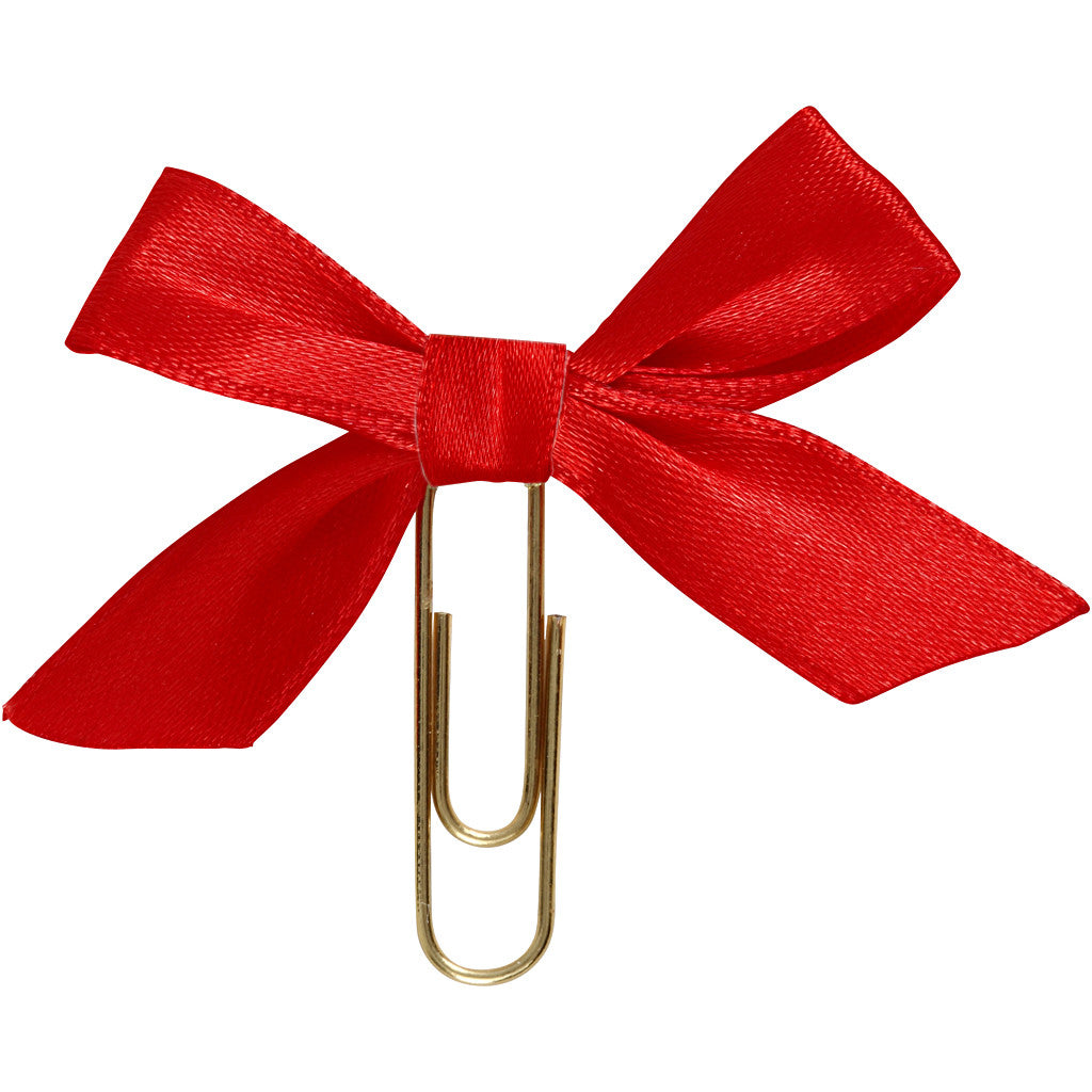 Trombones métalliques dorés avec un noeud en ruban de satin. Utilisés pour la décoration et les effets sur cartes, invitations , cadeaux, scrapbooking, calendrier et plus encore