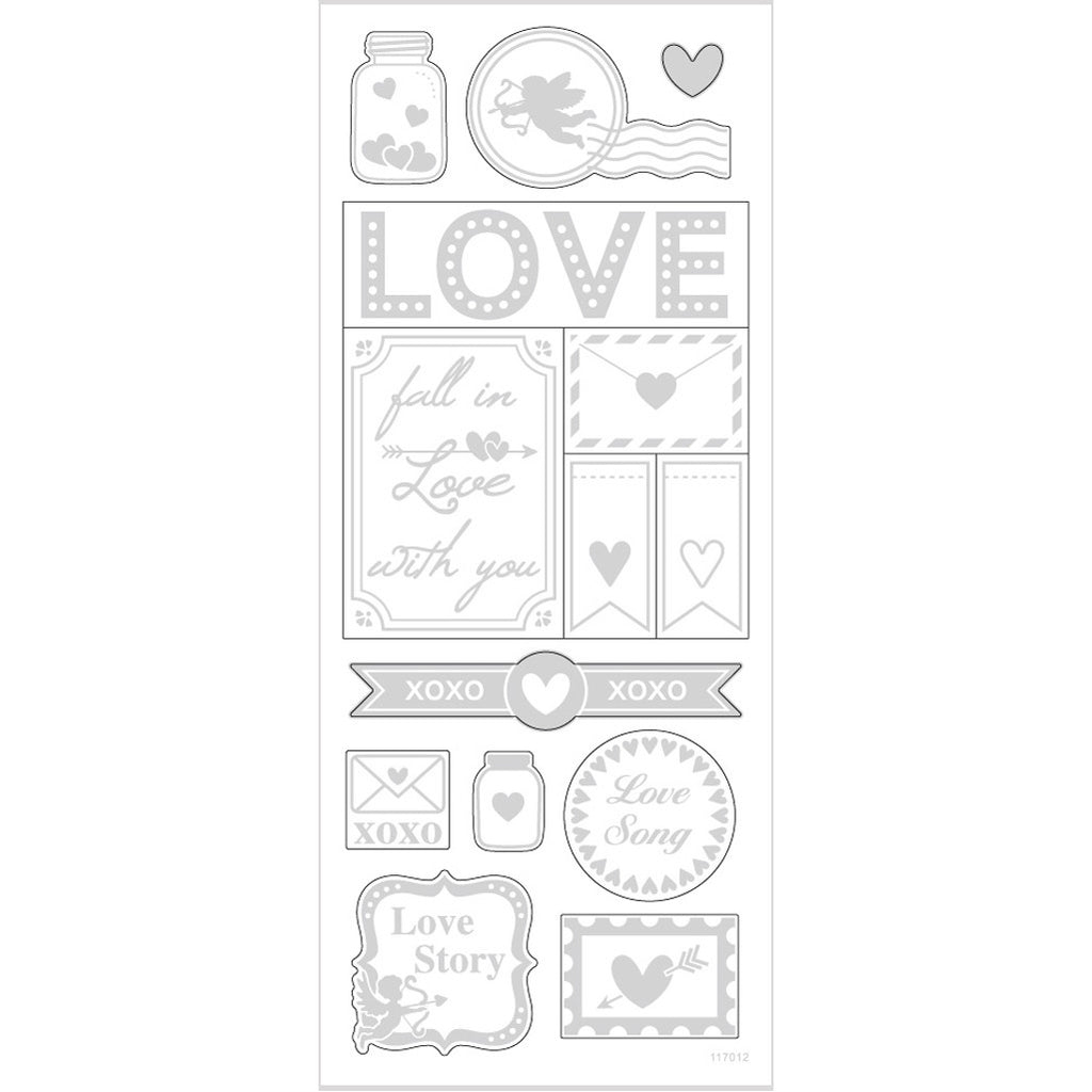 Autocollants étoiles, love, feuille 10x24 cm, ca. 14 pièce, argent, 1 flles [HOB-29142]