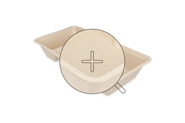 Ces contenants à frites sont fabriqués à partir de pulpe de canne à sucre. Il s’agit d’un matériau fabriqué à partir des déchets des plantations de canne à sucre. Le matériau est également appelé Bagasse, ce qui signifie « déchet » en espagnol.