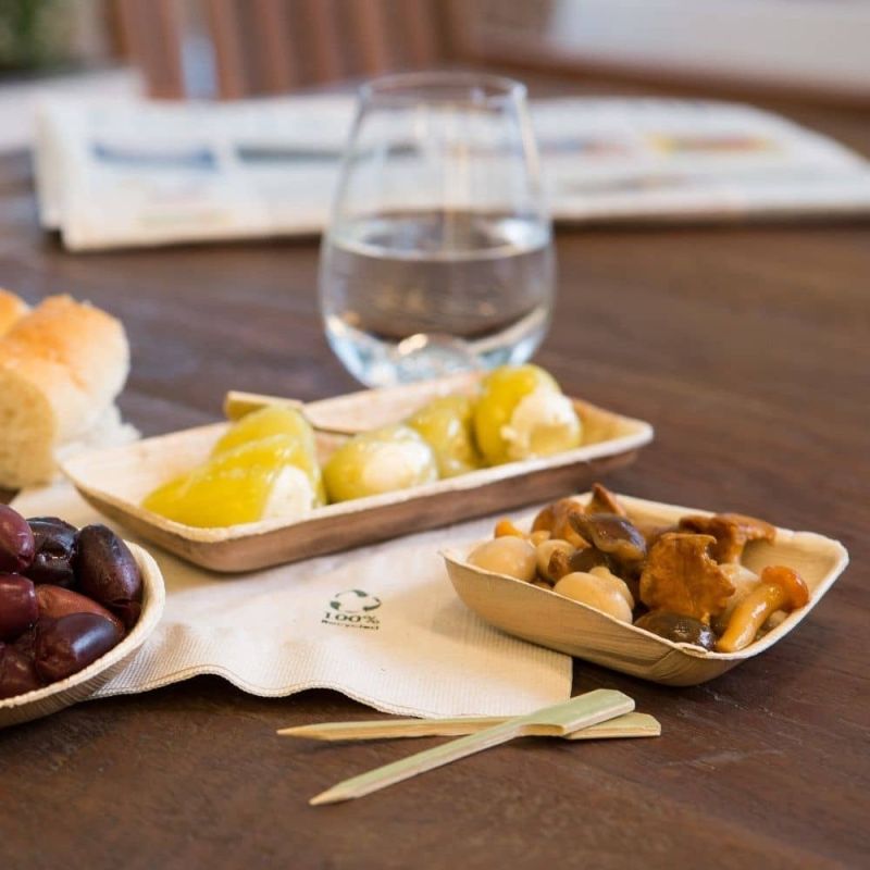 Les produits en feuilles de palmier peuvent devenir mous avec le temps, c'est pourquoi nous vous recommandons de n'utiliser les produits que pour une consommation immédiate et de ne pas conserver les aliments pendant une longue période.
