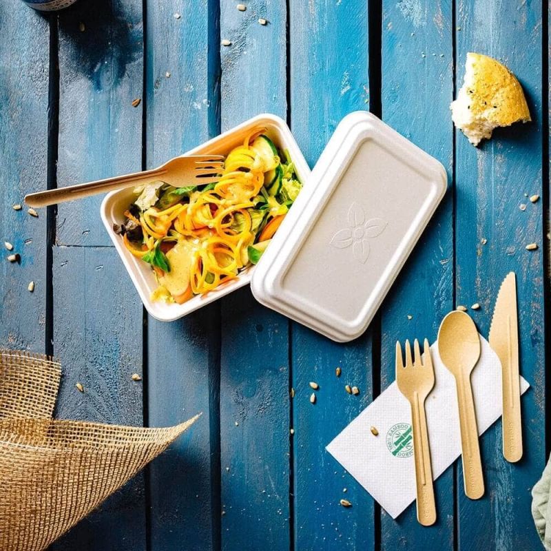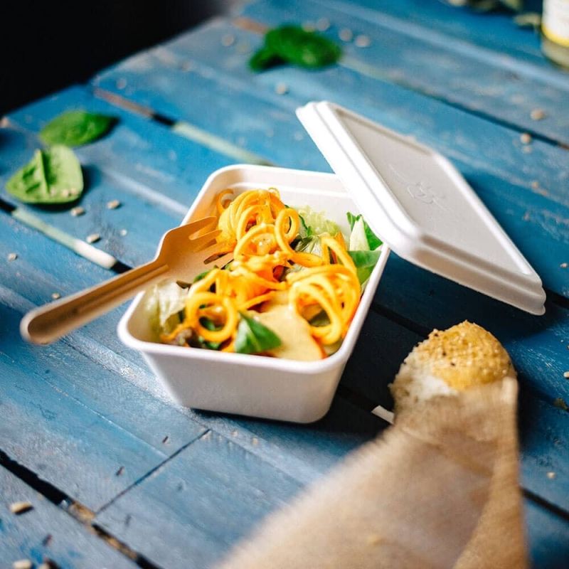 Les barquettes en canne à sucre sont super pour les plats à emporter. Ils peuvent résister à des températures allant de -25°C à 220°C et sont parfaits pour les plats de pâtes ou de riz, par exemple. Les barquettes résistent à l'eau et aux graisses et sont 100% biodégradables.