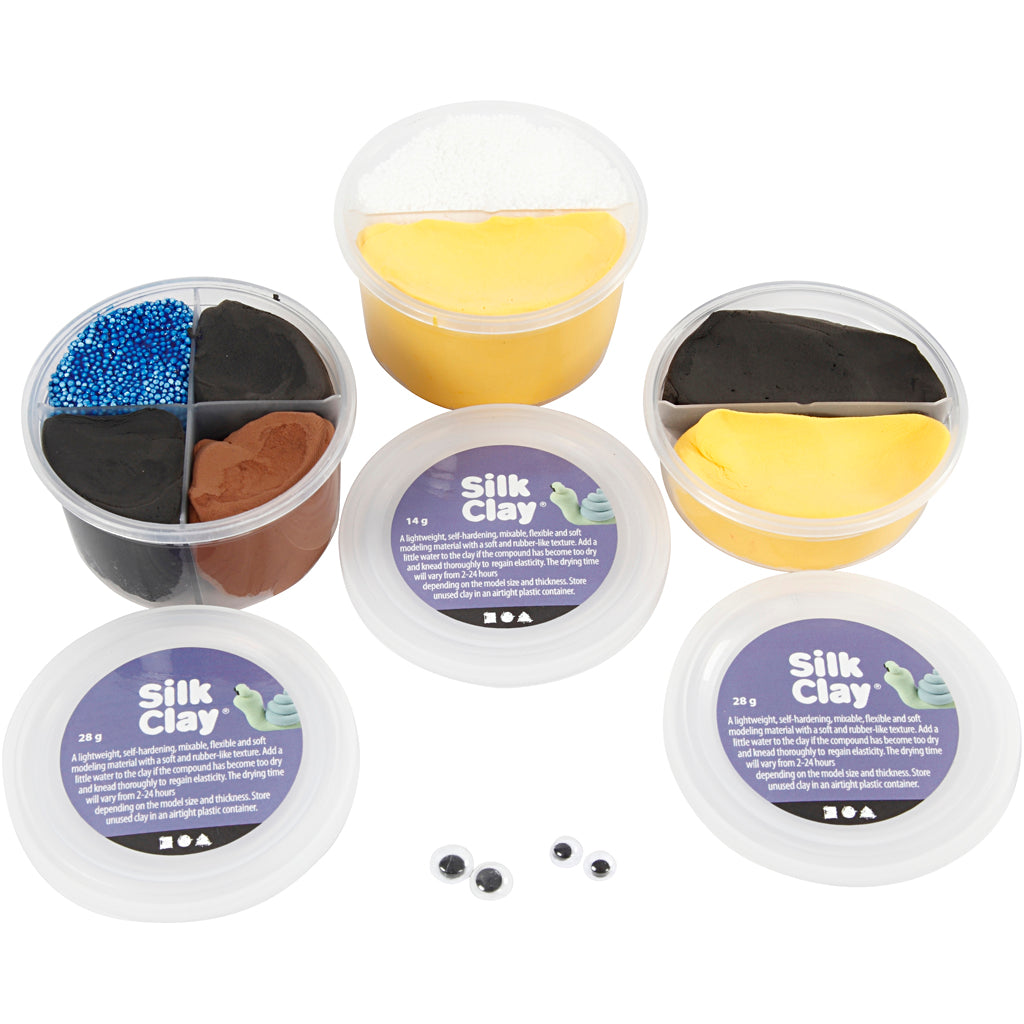 Kit de matériel pour le modelage des marionnettes à doigts Shaun et Bitzer de Shaun le Mouton en pâtes Silk Clay® et Foam Clay®. Instructions incluses
