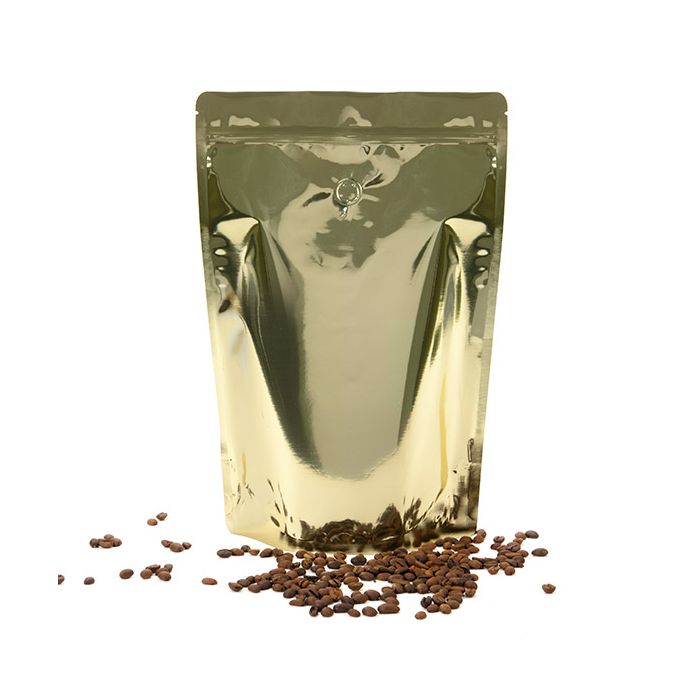 ZBGM6SGB est notre pochette classique à fermeture éclair debout qui a été redessinée pour contenir du café et du thé. Cette pochette de 125 microns a des mesures extérieures de 22,9 x 12,1 x 34,3 cm et un espace utilisable de 21,9 x 10,2 x 30,3 cm. Elle est idéale pour contenir 900g de grains de café entiers, de café moulu ou de feuilles de thé. Elle est équipée d'une valve de dégazage unidirectionnelle qui évacue le CO2. Les sachets Stand Up sont parfaits pour être posés sur une étagère ou un comptoir de vente au détail. Ce sachet est fabriqué à partir de matériaux à haute barrière et dispose d'une fermeture éclair refermable pour préserver la fraîcheur. L'extérieur en or massif brillant de ce sac offre beaucoup de place pour l'impression d'étiquettes ou d'autocollants. Des encoches de déchirure sont situées au-dessus de la fermeture éclair pour faciliter l'ouverture en cas de fermeture thermoscellée.