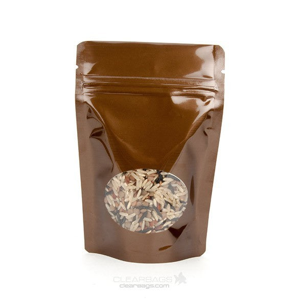 Doypack Bronze Métallisé avec fenêtre ovale 10.2x6x15.2cm | 57g (100 pièces) [ZBGMO2BZ]