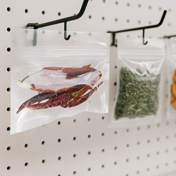 Sacs zip à suspendre spécialement conçus pour garder les odeurs et les goûts. Ce sac a un rabat découpé qui rend le sac idéal pour le scellage à chaud, pour que le sac soit ainsi inaltérable. Cette fermeture est idéale pour vos produits odorant.