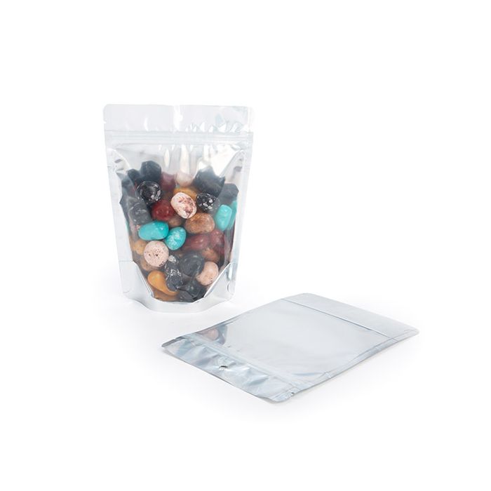Notre doypack blanc ZBGW46H mesure 12 x 7,5 x 18,5 cm et est conçu avec un dos blanc, un intérieur argenté et un devant transparent pour mettre en valeur votre produit. Le sachet a des dimensions intérieures de 10,2 x 5,7 x 14,9 cm et peut contenir 3-4 onces/85-114 grammes (basé sur le poids de grains de café entiers). L'emballage peut contenir du café, des bonbons, du sel, des épices, des snacks ou encore des vitamines.